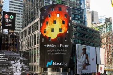 Regardez la campagne WISeKey Parrot – Times Square Nasdaq